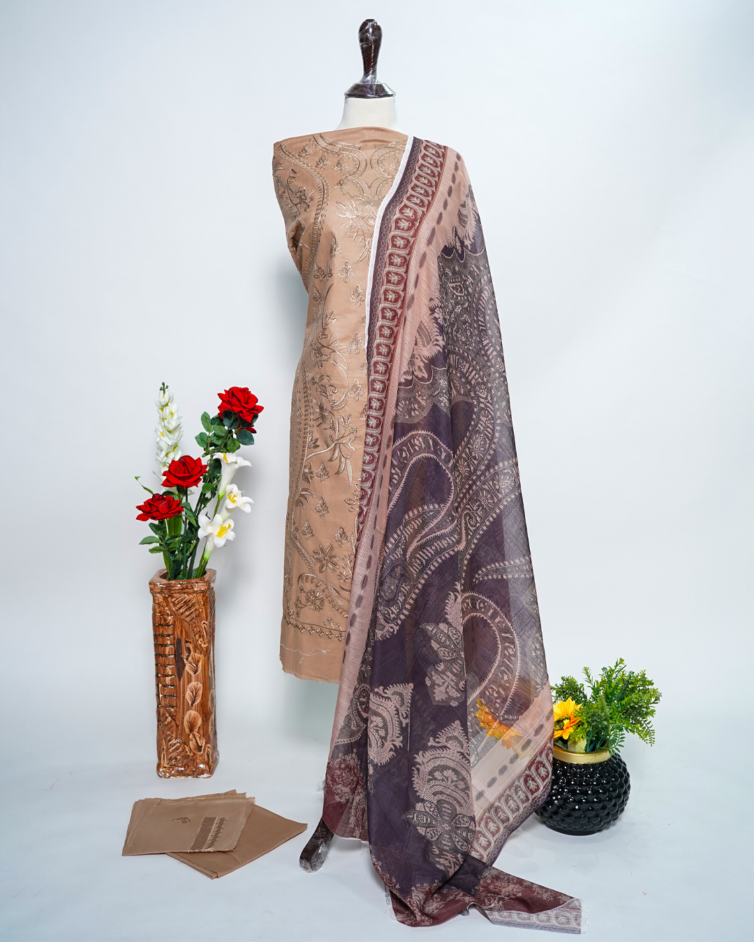 Lawn 3PC Embroidered Shirt with Digital Printed Shawl LG – 009