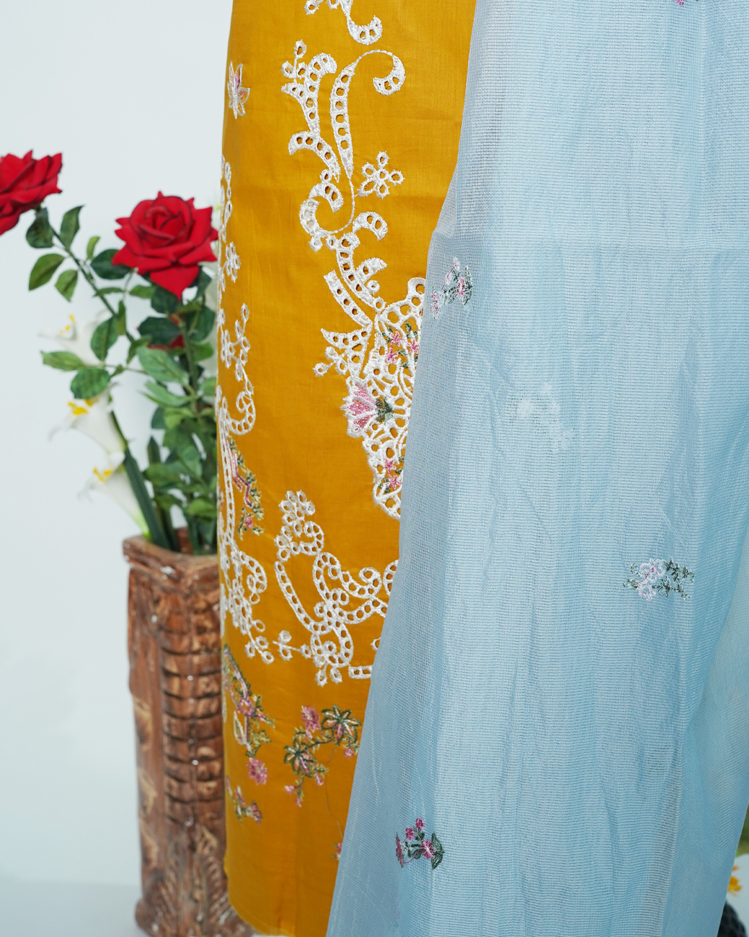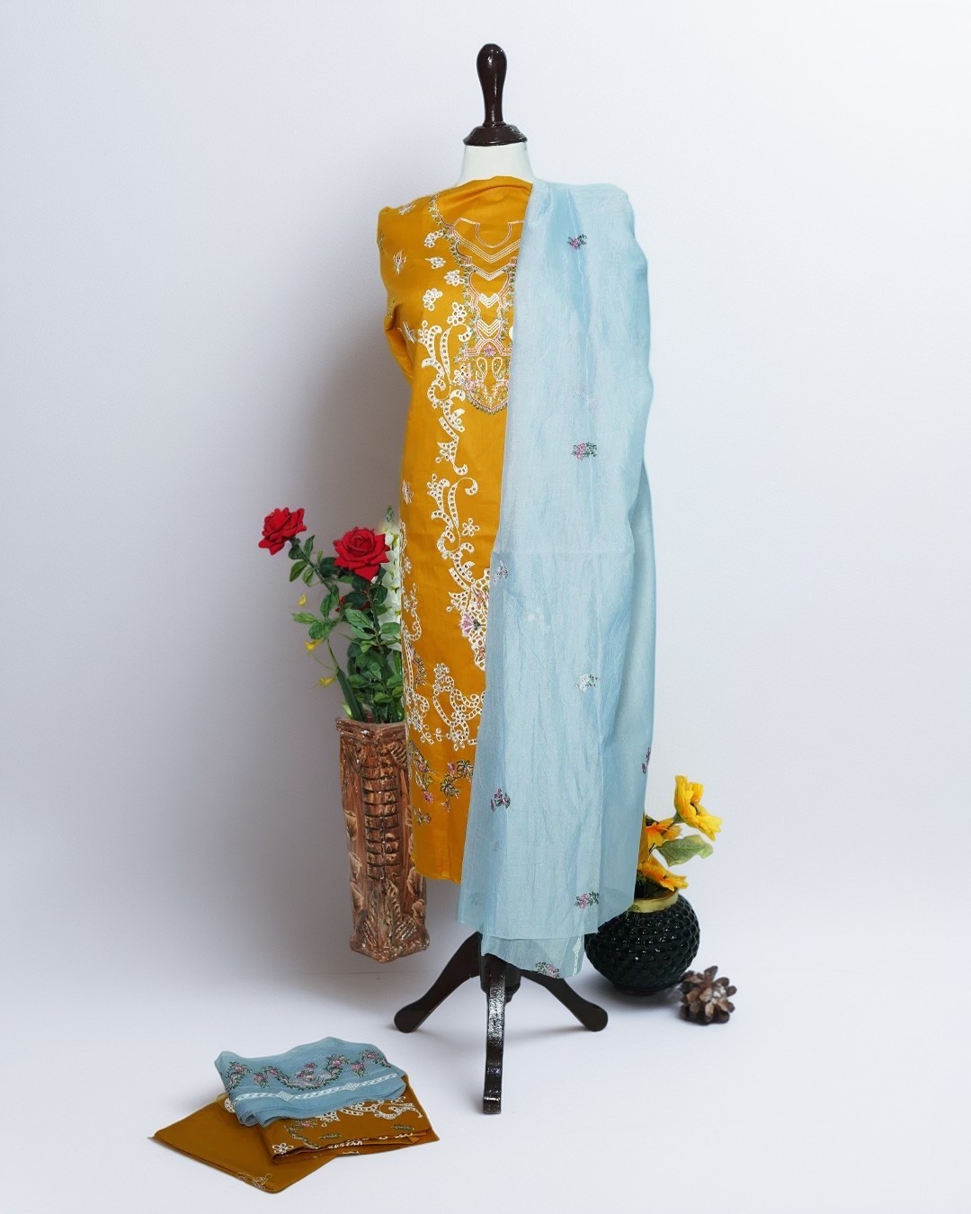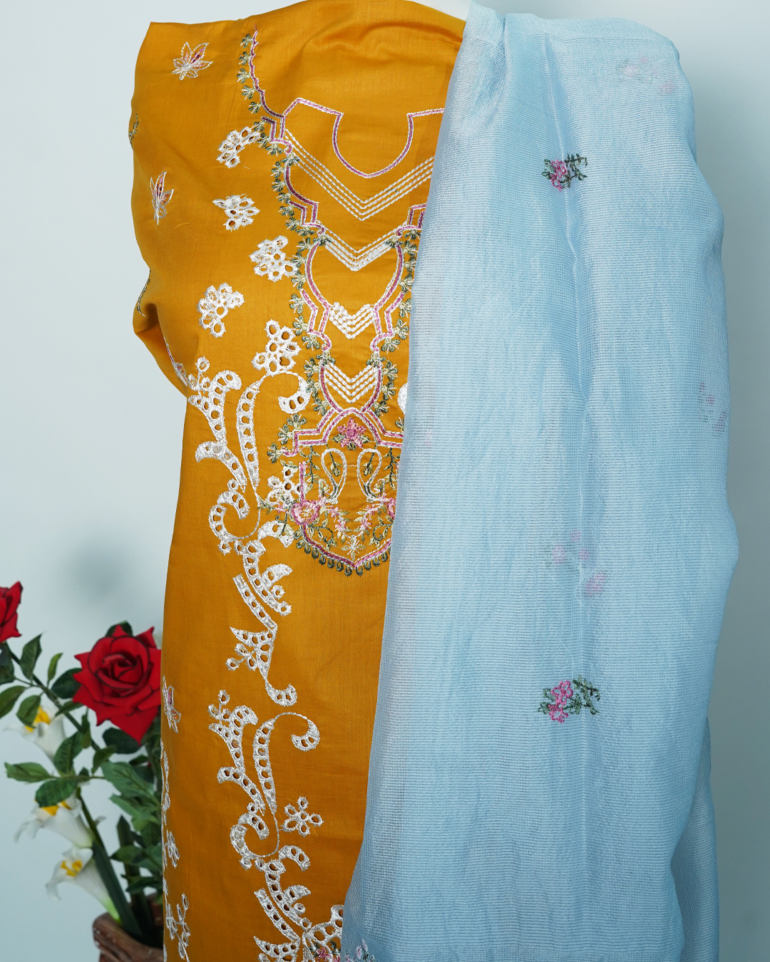 Lawn 3PC Embroidered Shirt with Organza Embroidered Dupatta LG – 017