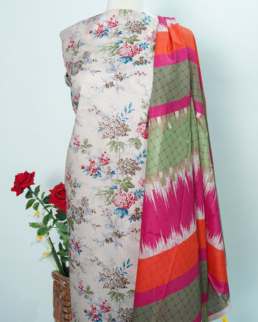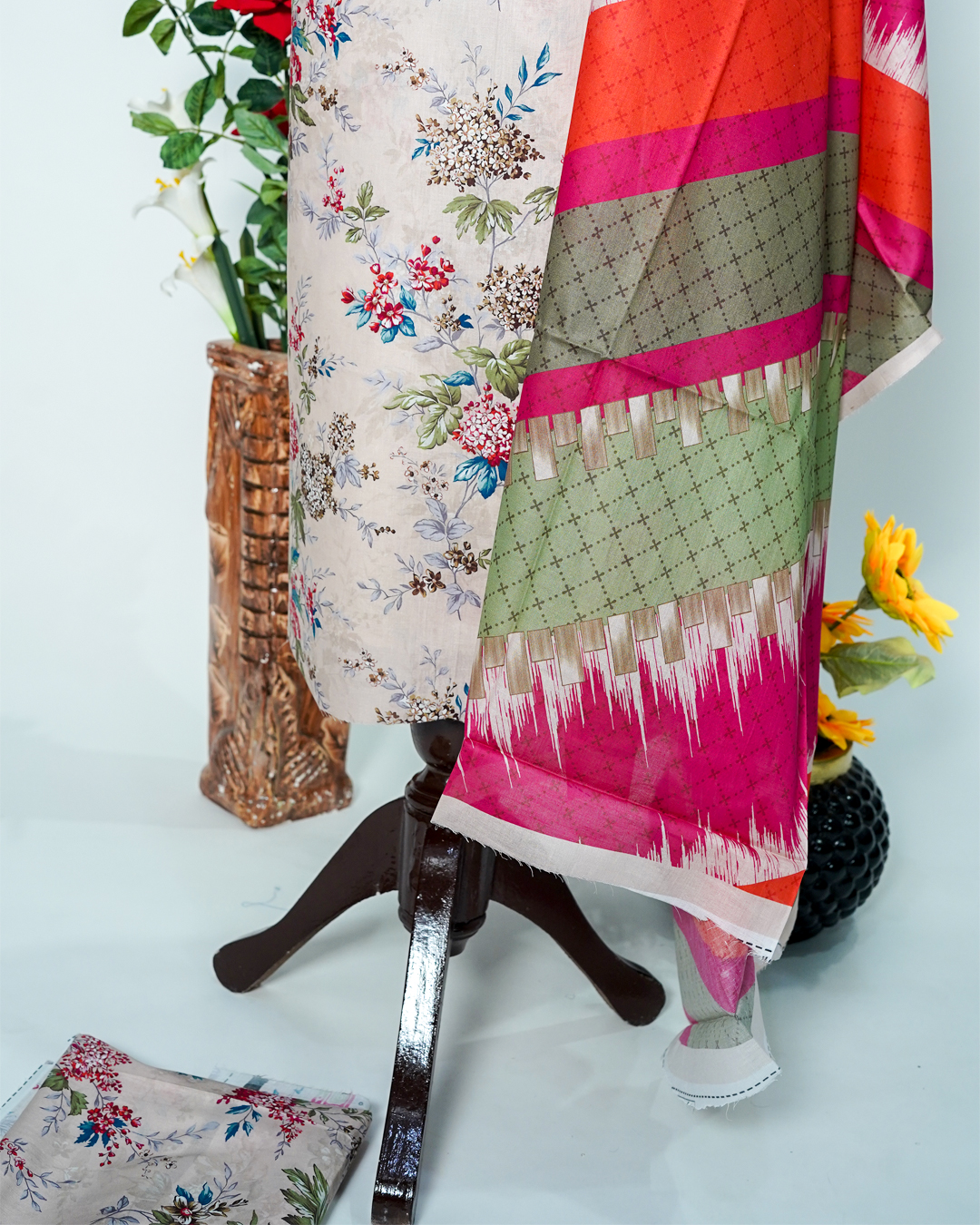 Lawn 3PC Digital Printed Shirt and Trouser with Voile Dupatta LG – 020