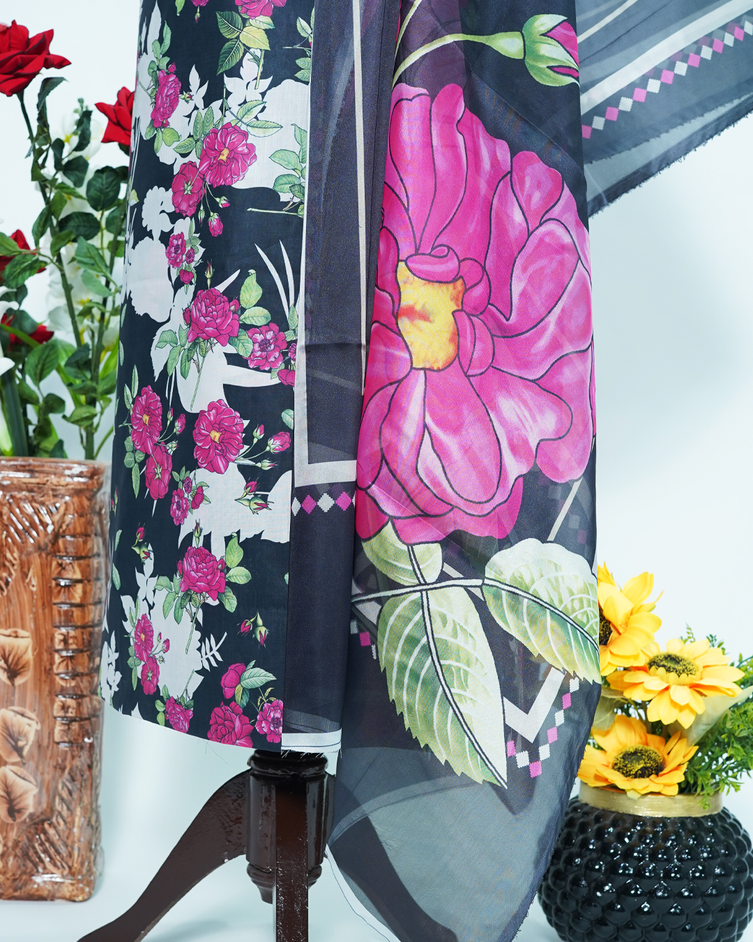 Lawn 3PC Digital Printed Shirt & Trouser with Printed Jacquard Dupatta LG – 026