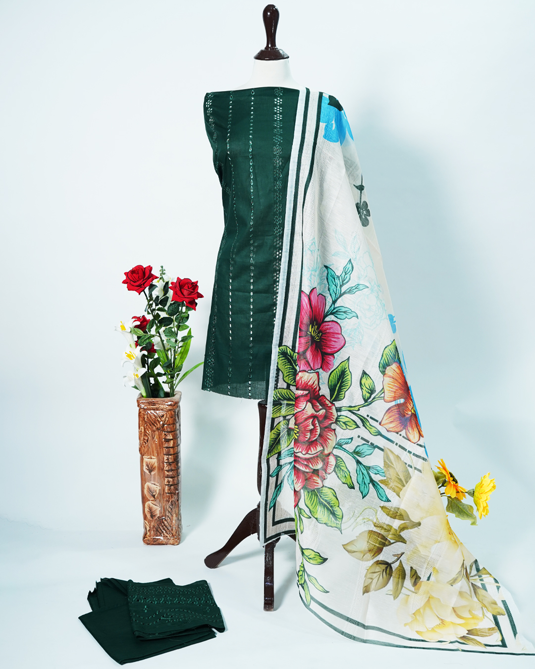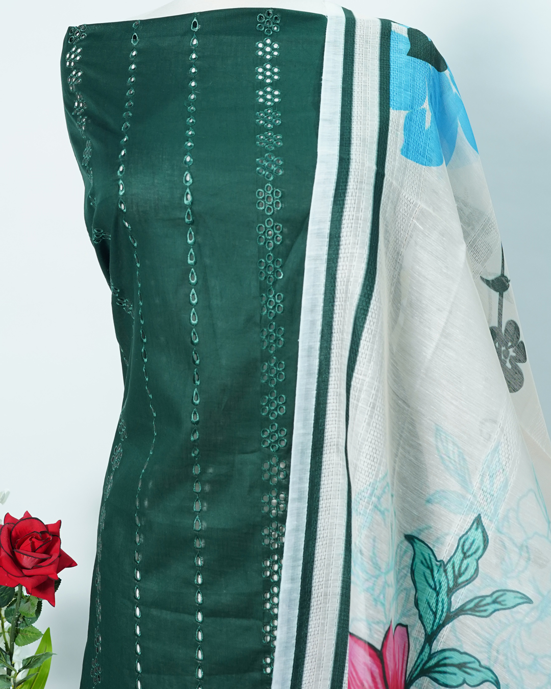 Lawn 3PC Chickenkari Embroidered with Printed Dupatta LG – 049